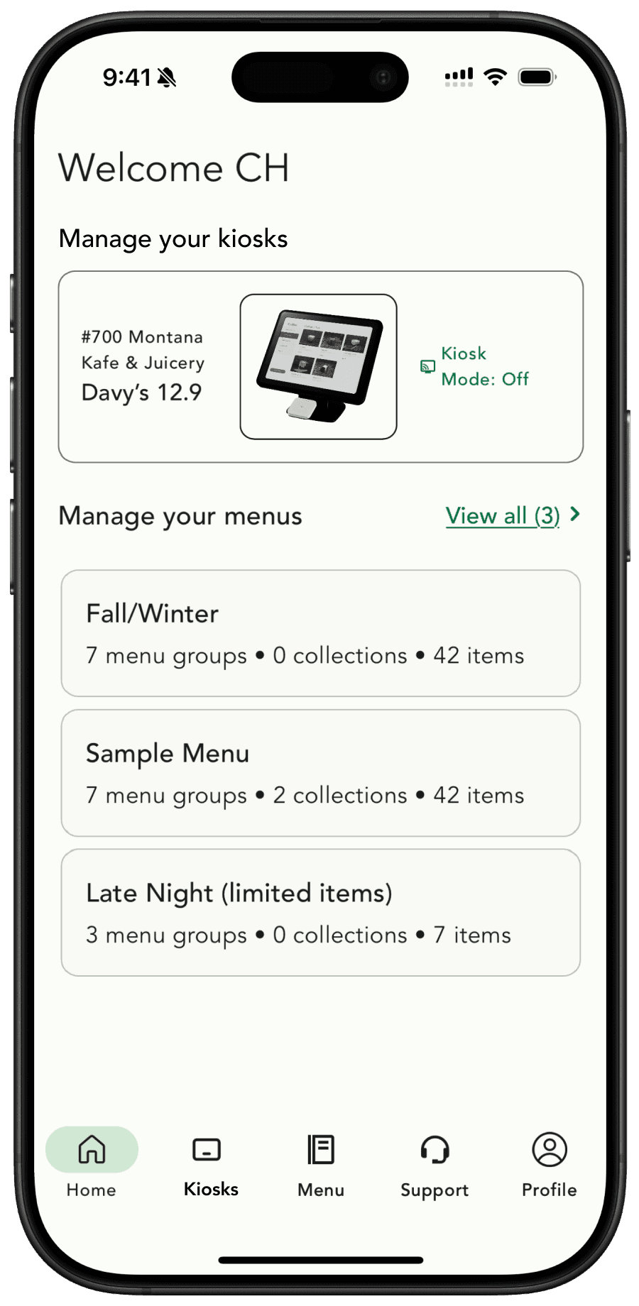 Update the way your kiosks look and feel in just a couple of taps. From order flows and notices, to welcome screens — and beyond.